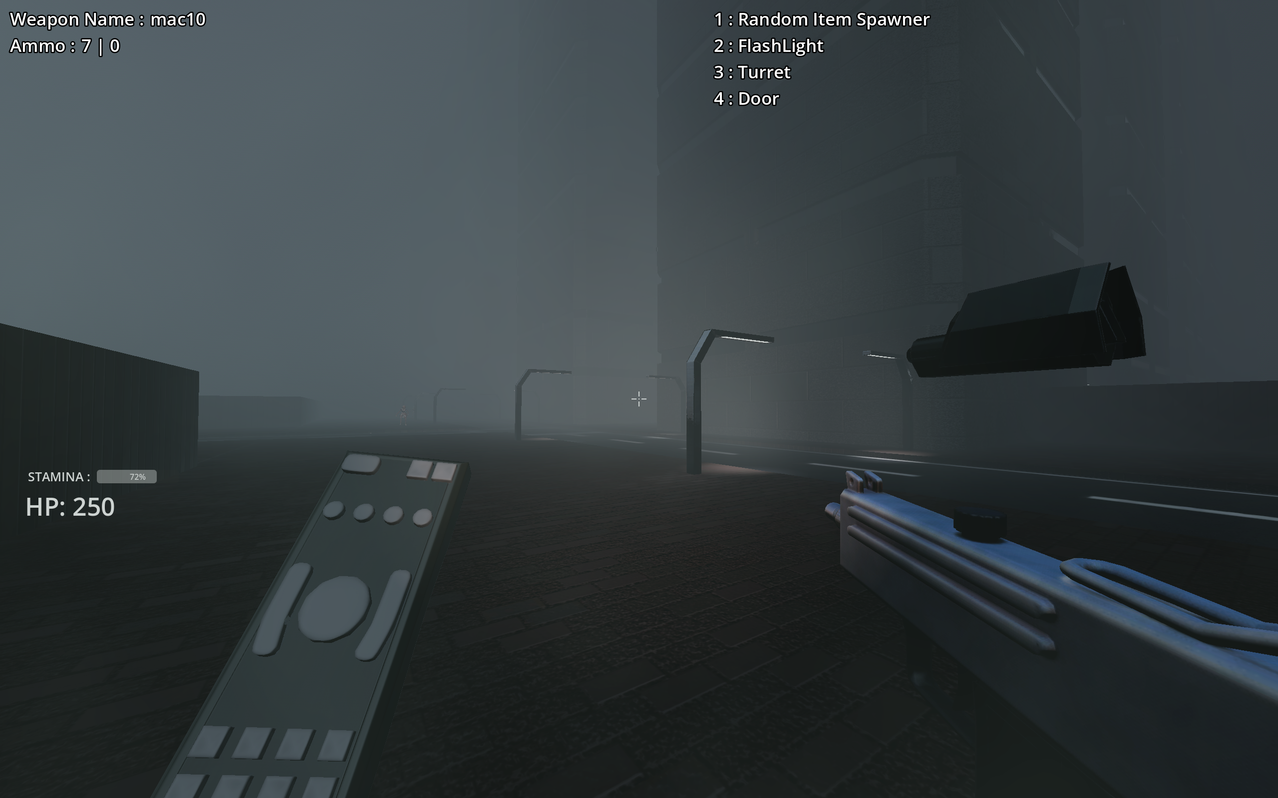 The theme was one tool, many uses, so we created a remote provided to us by The Devil. It can open doors, turn on turrets, act as a flashlight and spawn random items - both useful and not.