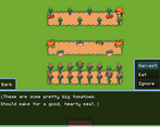 1. When I was doing the grocery shopping at the castle down, picking the 'later' option the apples/tomatos choice and going back to the temple gave me a cutscene as if I had picked apples, and afterwards I had Barb's portrait stuck on my screen(the debug tool fixed it). I also walked over the sprites for the store buildings there, too.