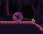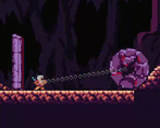 The player character is shackled to a giant boulder which both helps and hinders them at different points during the game.