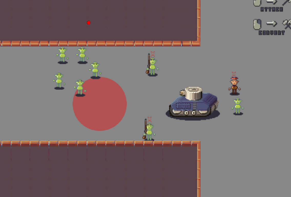 Fun game really like the mechanic! it is nice how the converting and fighting is fairly quick and one dose not have to wait around for to long. and how the tanks add in more game play instead of just waiting longer for them to die but also needing to dodge. My one complaint would be that the position of the camera was not ideal, often i would be attacked from orcs with rifles that were outside of my view, maybe zoom out a bit with time, and center the camera on your groups of orcs. Otherwise great game.
