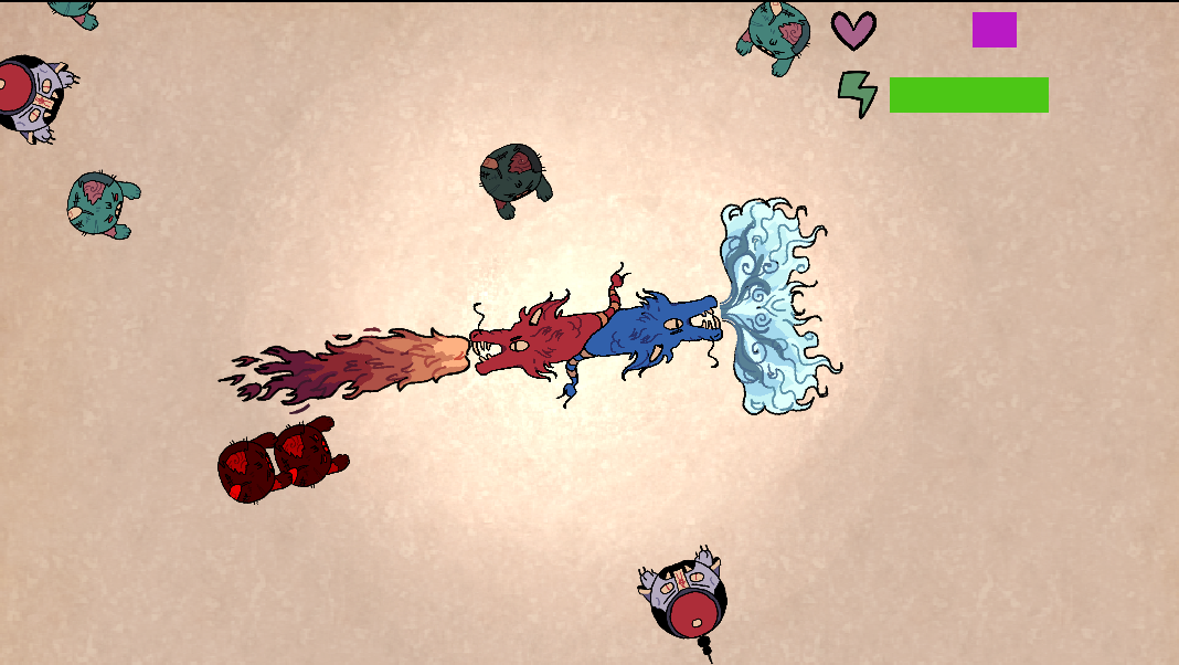 You are two dragons joined together. Without each other, it will be difficult to defeat the zombies!