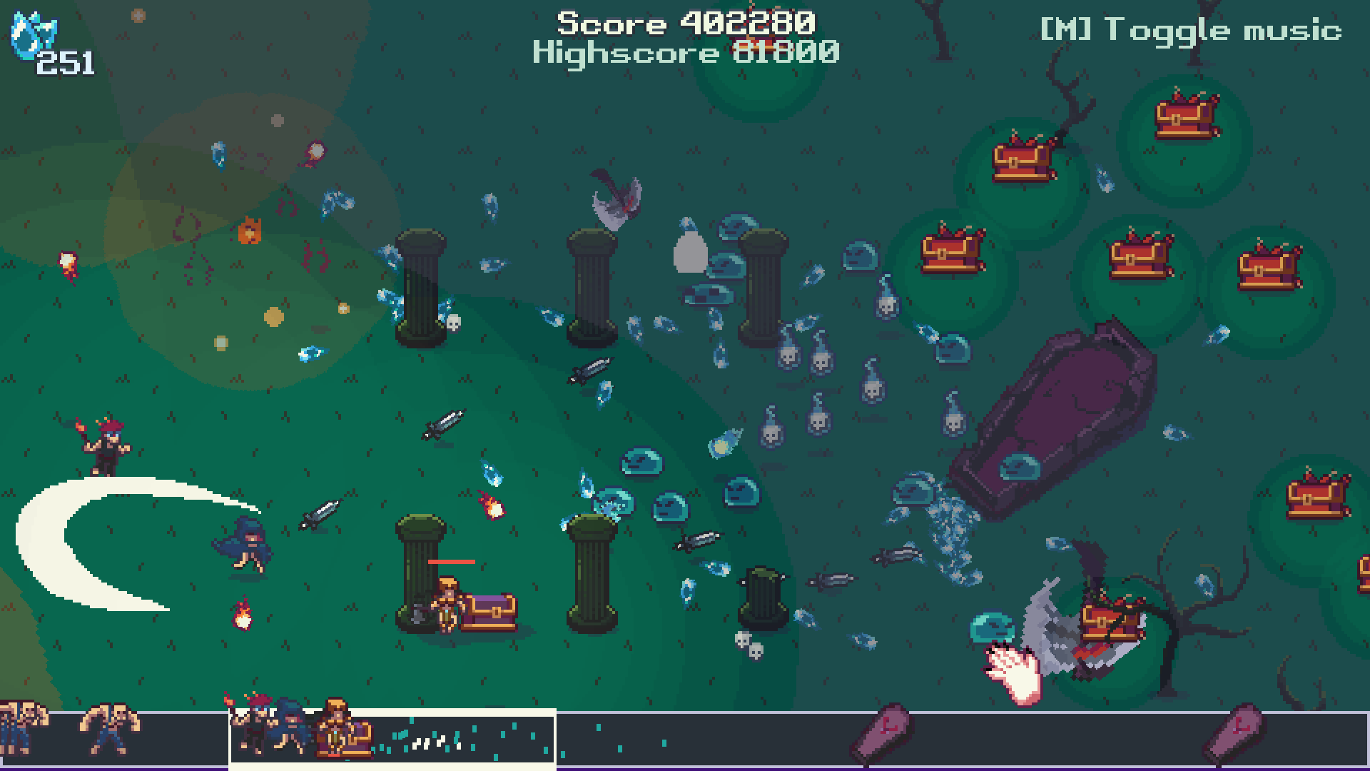 Wow this one is fantastic! It's a neat twist on the Vampire Survivors genre, the game feel and presentation is really polished, and the game itself is actually really fun and feels fairly balanced, which is really rare for a game jam game (for totally understandable reasons of course). The gameplay actually feels more active than Vampire Survivors itself since spawning units is much more complex than running around avoiding enemies and auto attacking, and the mechanic of not being able to spawn units too close to the heroes makes it much more interesting and challenging. Would love to see this expanded into a bigger game, but what you guys have made is already very fun and impressive!