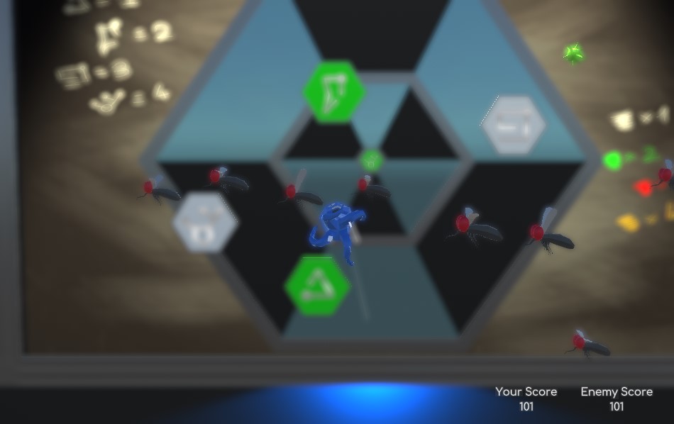 Trying to dodge obstacles to get to the dartboard in a Frogger-like fashion was a neat spin on the concept! I didn't fully understand the scoring system until about halfway through playing, but even once I did, it still felt kinda wonky? It's probably kinda unavoidable when your number system uses alien figures instead of human numbers ^^'