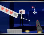 You play as a reticle in a shooter game. Control the reticle and evade enemy projectiles on the screen to avoid damage! Use the reticle to reload the gun and pick up health.