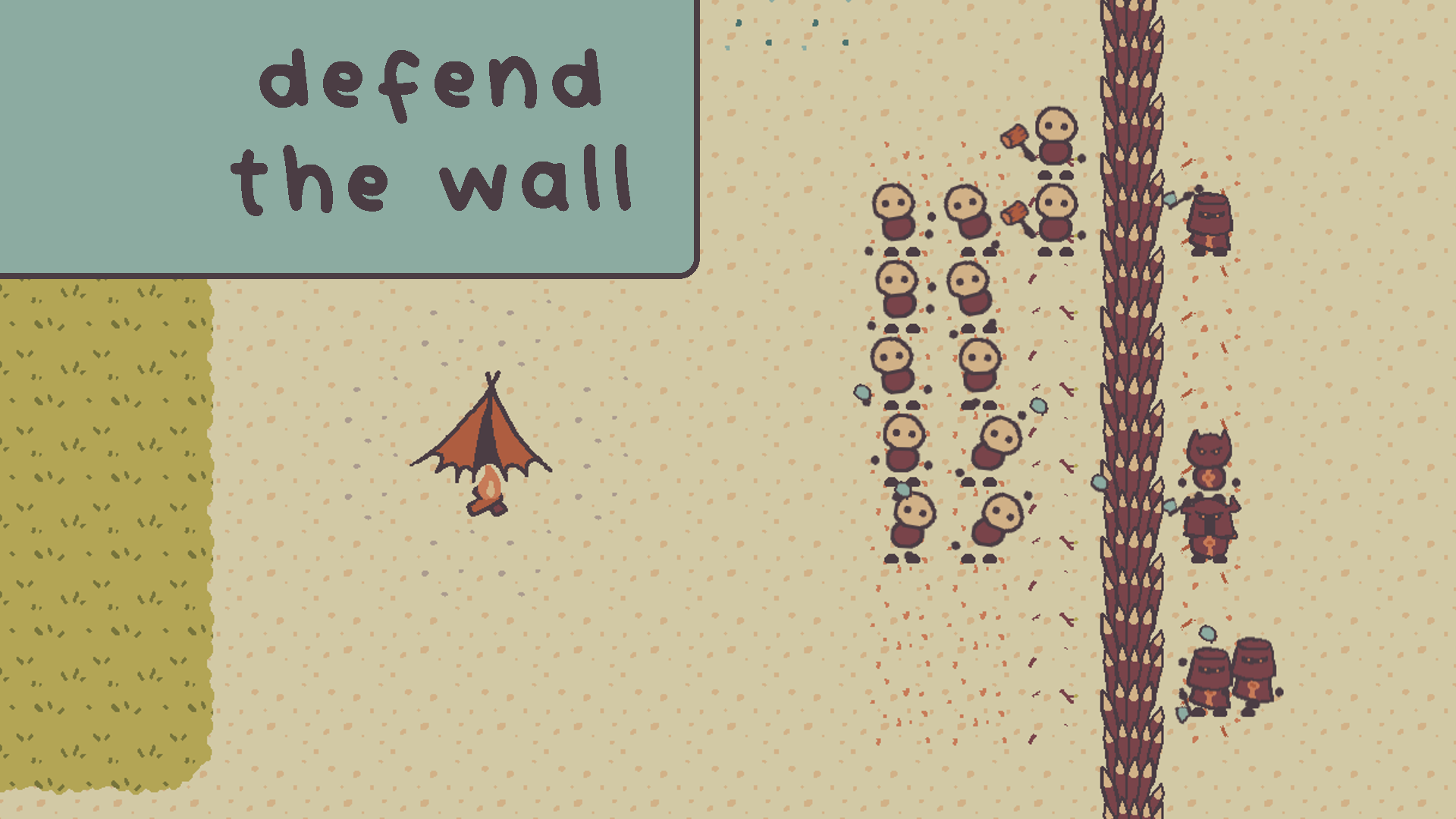 The enemies are a bit too strong, but it makes the gameplay hard and fun. You send all of your guys to the battle, repair and gathering wood for the repair and manage to beat the wave with like 1 wall durability to spare