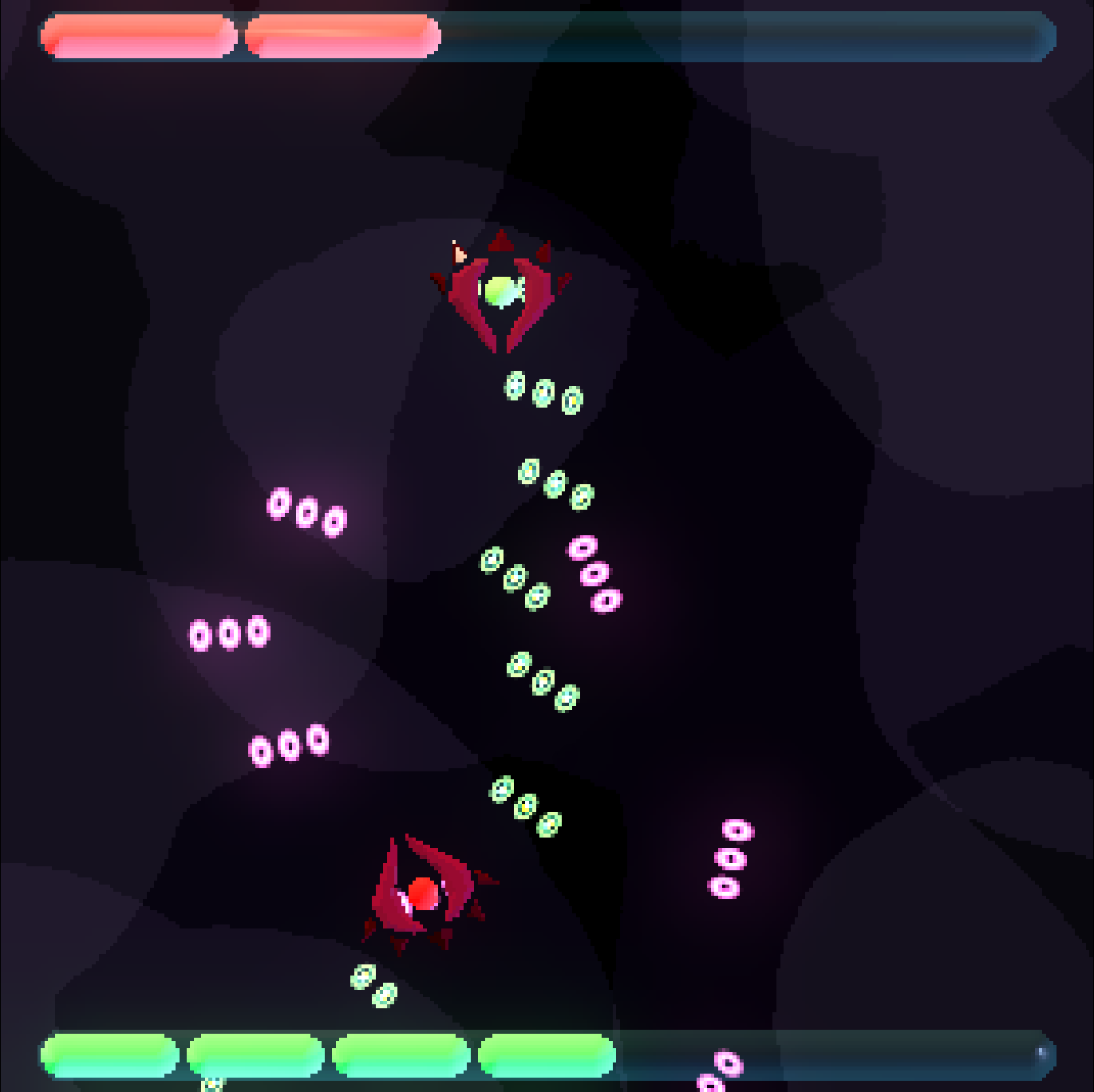 i really like the idea of having to fight "yourself" as a boss. forces you to make some interesting decisions during the waves (should i stand still and not shoot for as long as i can so i have an easier boss battle? or will i get overrun during the wave if i do that?). i like the variety of weapons and upgrades, and did a few playthroughs to see how each of them played. the only bug i encountered was that the dialogue box wouldnt go away when i fought myself, which made the bottom part of the screen near unusable. i think making the space ship a bit smaller could smooth out some gameplay. its a bullet hell, after all, and there are sometimes so many projectiles on screen that its impossible to weave through them. you have enough health as is that you can pretty easily tank a few shots during those situations, but i think a smaller but squishy ship would make it a bit more tense. small suggestions, only because the core gameplay is already so polished and complete. incredible entry for a jam, well done!