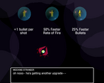 I like the idea that when you pick an upgrade you have to think about which one would be the most easy to deal with in the boss battle