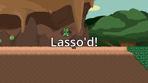 Hello! I like your graphics and audio. The player character is charming. I think the background would benefit from a parallax effect to make it really feel like you're moving through a world. Additionally, it's quite short, expanding the level a bit or adding more creatures to lasso would help give the player a chance to get a better understanding of the mechanics.