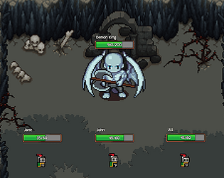 Beat the demon king. I like the concept of building a strategy to be used in different fights and adjusting it to overcome any obstacle. I think it's a bit too simple right now, and I doubt you could die with just alternating heals and damage.