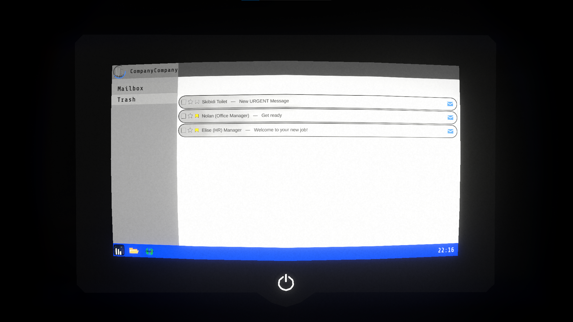 The atmosphere and narrative of the game is actually superb. Reading these spam mails are so much fun, and then I see that one mail and the screen goes dark... what an experience. Great job!!