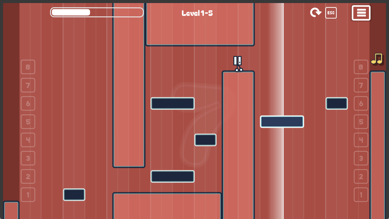 It's a very cool concept and it is done well. The addition of the spike balls and the no music zones were added at good points, as I settled into a static solution of right before they were introduced, even though climbing with the note blocks was definitely far a consistent pattern.