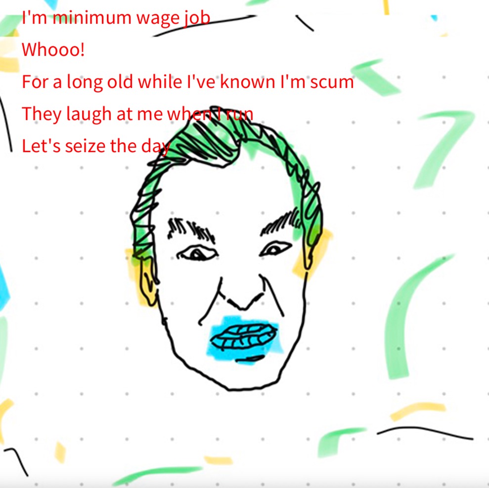 The Text and music samples (5seconds each) are from the Idles band - https://www.idlesband.com/.