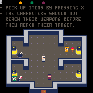 Hey, that's PICO-8, very cool! I've finished the game end enjoyed myself but felt like swapping weapons randomly worked, perhaps I got lucky. Maybe some simpler case at the start like the tutorial but with an option to reset the loop would help. Nonetheless I had fun playing your game and props for making it in PICO-8 :)