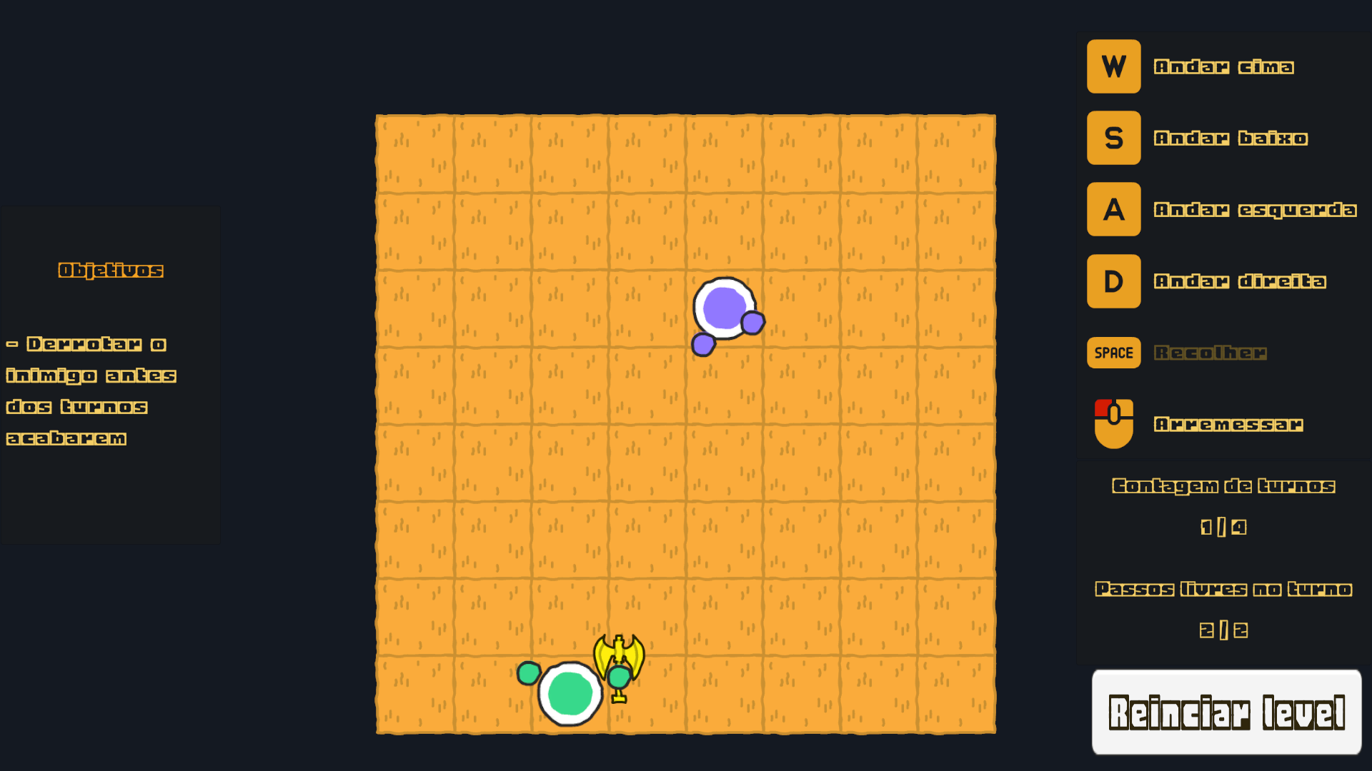 Primeiramente vlw por ter jogado e dado feedback, segundamente foi isso mesmo, eu comecei o jogo na sexta feira a noite apenas, sozinho e dps de um bom tempo sem codar joguinhos "pra valer" ai não consegui adicionar os outros elementos que cheguei a planejar, que bom que curtiu, vou continuar o desenvolvimento dele sim, adicionar som, tradução, dar uma melhorada no visual e expandir as mecânicas e levels, fica de olho que vou atualizando a build por aqui dps do periodo da jam