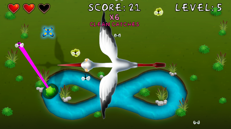 Really cute, chill and addictive game! I love the simple gameplay that gets more and more complex as you get more upgrades. Catching the bugs while avoiding the stinky ones is cool, and the storks kept me on my toes. The point scoring can get really high, which is super fun getting a super large streak. Well done!