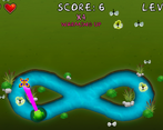 Our frog is stuck in an eternal river loop with nothing to do in this boring swamp except feed.