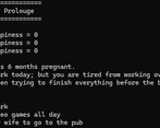 The input section did make me laugh... a lot. The game was interesting but it got a bit repetitive and no matter what I did the husband was getting happier even after cleaning up cat vomit and changing a babies nappy