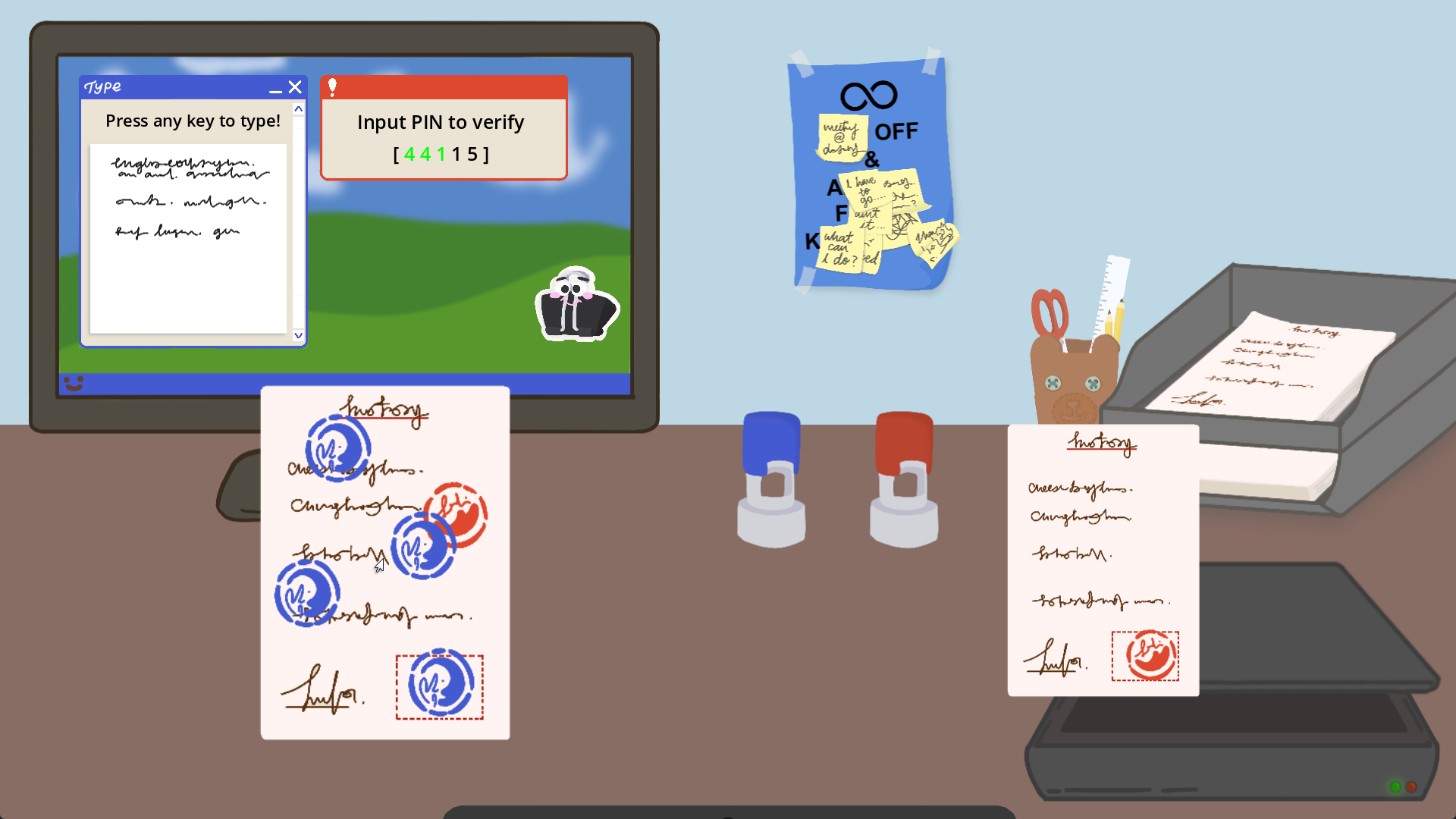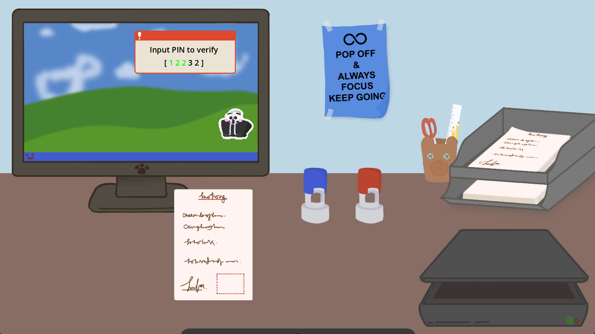 I like how you make the simulation of real office life possible. The art is great and the music also fits the game very well. The various tasks that