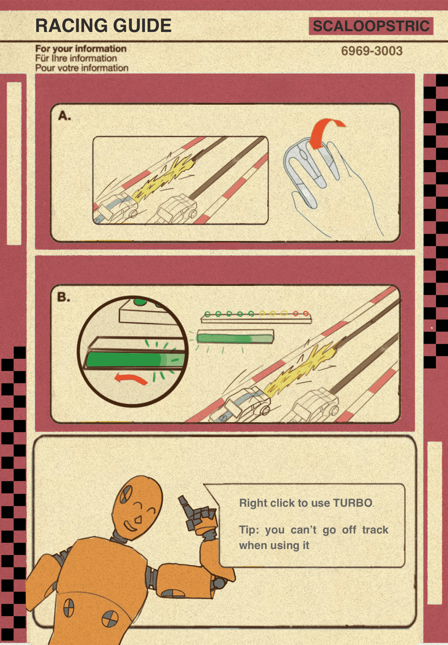 Scalextric is the very definition of "Loop" and a game we all loved growing up. Scaloopstric is our very own tribute to this game in our own way.