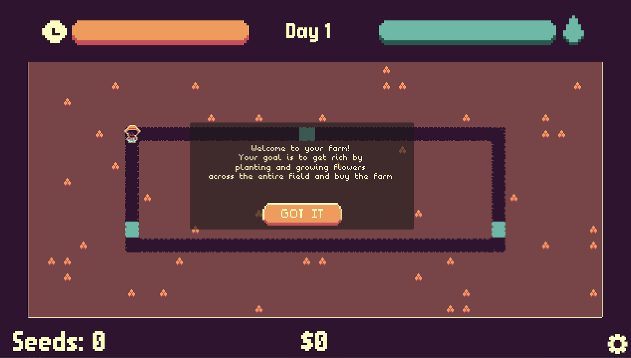 super relaxing to play very nice gameplay loop and very unique idea! I wish there was a way to speed up or automate watering the seeds overall to make it more like a clicker game but i also understand that might not be what you wanted. also it would be nice to have an indicator when to press the arrow keys to water. the game is really cute and has a really nice color pallette as well. awesome job!