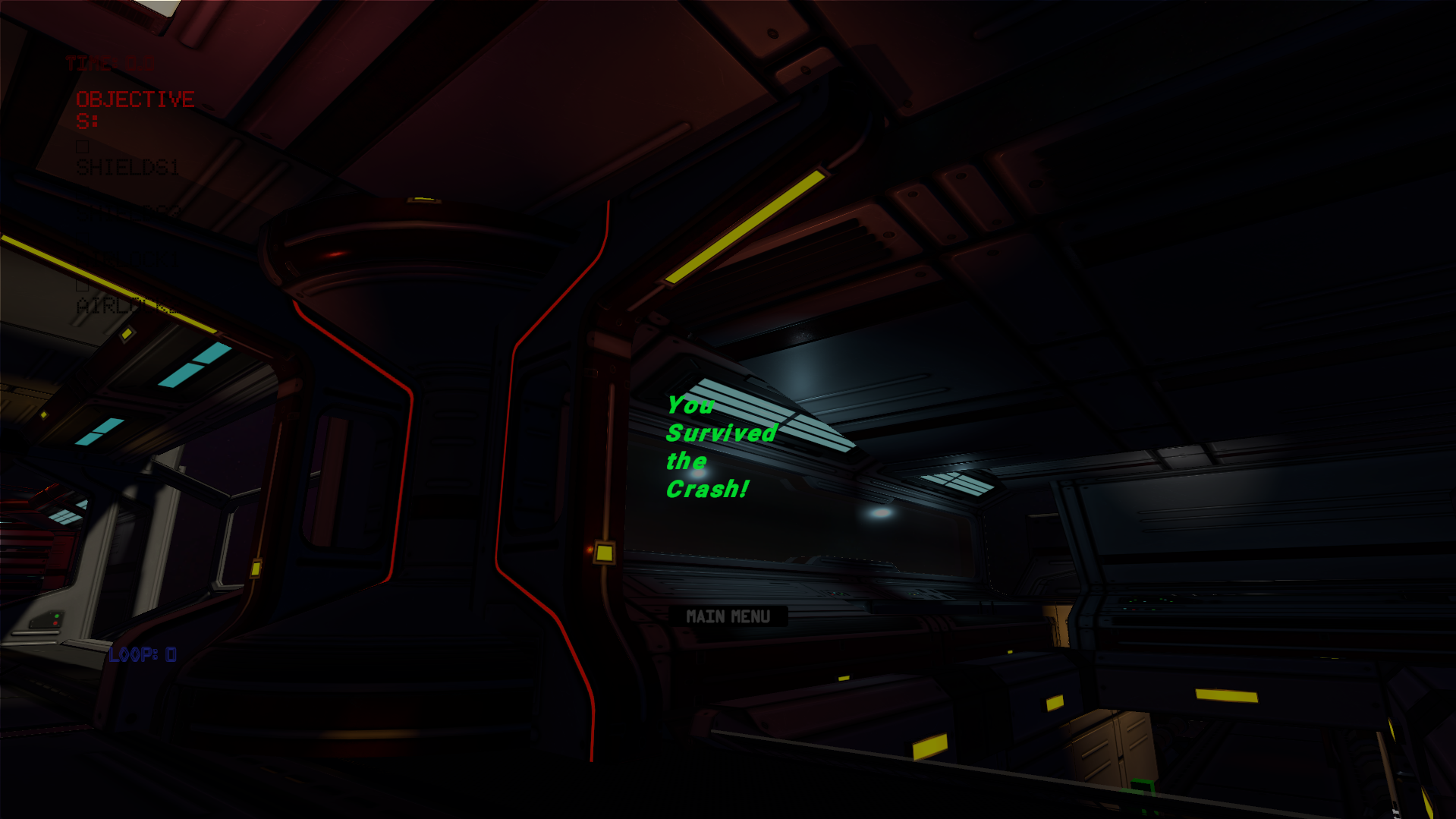 As for your first point, I'm writing this to clarify for any other players that play my game, the "reset" is actually not just a simple reset. You're meant to fail the first loop, and in the next loop certain things change- certain systems stay active across loops, while other return to their inactive state! If you've ever watched Groundhog Day or Edge of Tomorrow, or played Exit 8, that's the kinda feel I wanted to take inspiration from! You just got lucky and accidentally figured out the right order to the systems, so you won in your first loop, which, I admit, isn't as challenging as I hoped it'd be. There's definitely room to force the player into a second iterations or making the loop mechanic more readable/understandable, but given the time window of the jam I wasn't able to realize everything that I wanted to. The player is meant to fail the first loop, then take that knowledge and activate the remaining inactive systems on their second loop, and certain small things change. If I was to work some more or given some more time to update the game, I'd make the changes bigger and more noticeable.