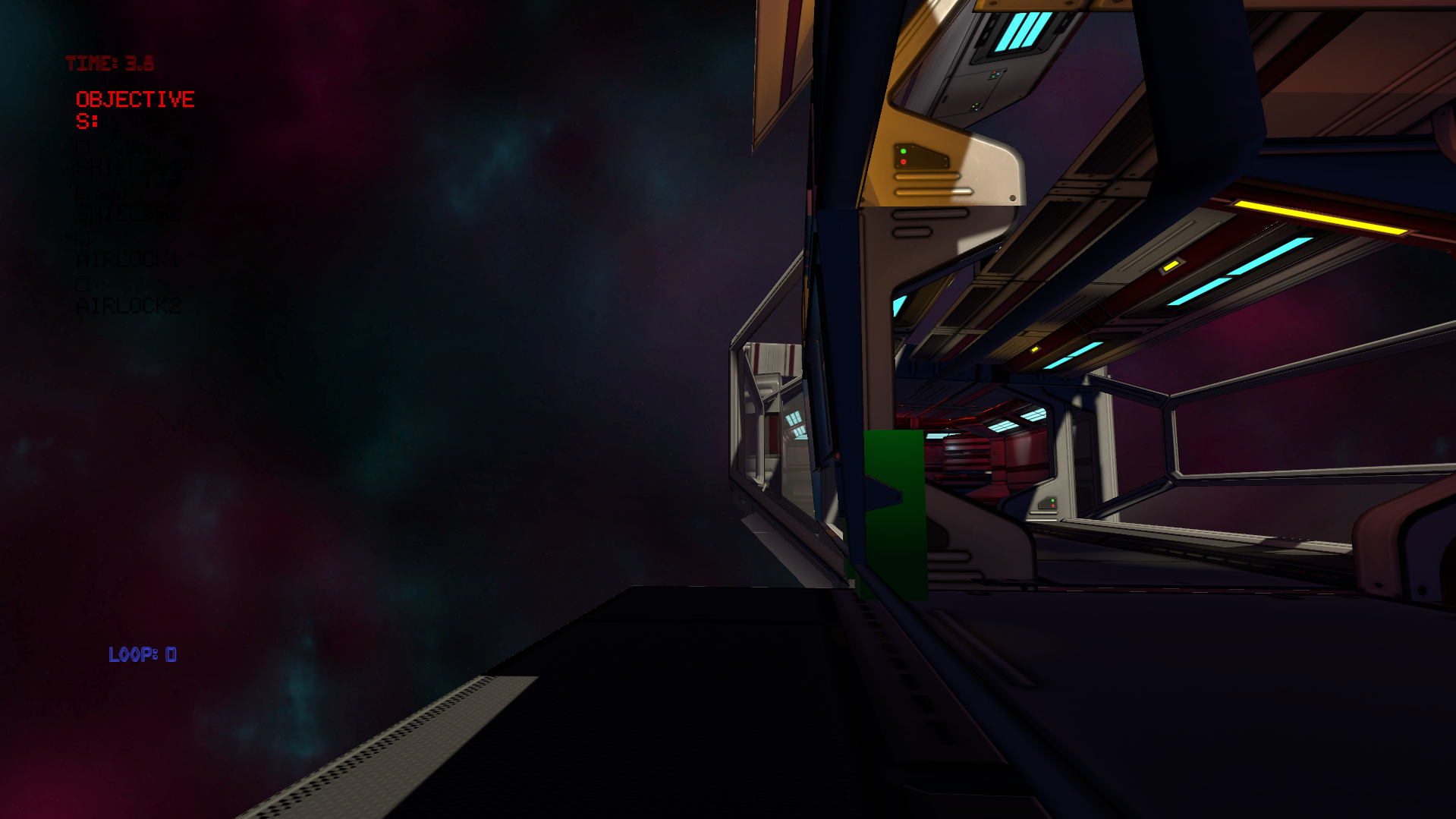 The spaceship design looks cool, but not much gameplay wise. I don't think there's really any loop mechanic. From reading the description, I don't think restarting the level counts as a loop.