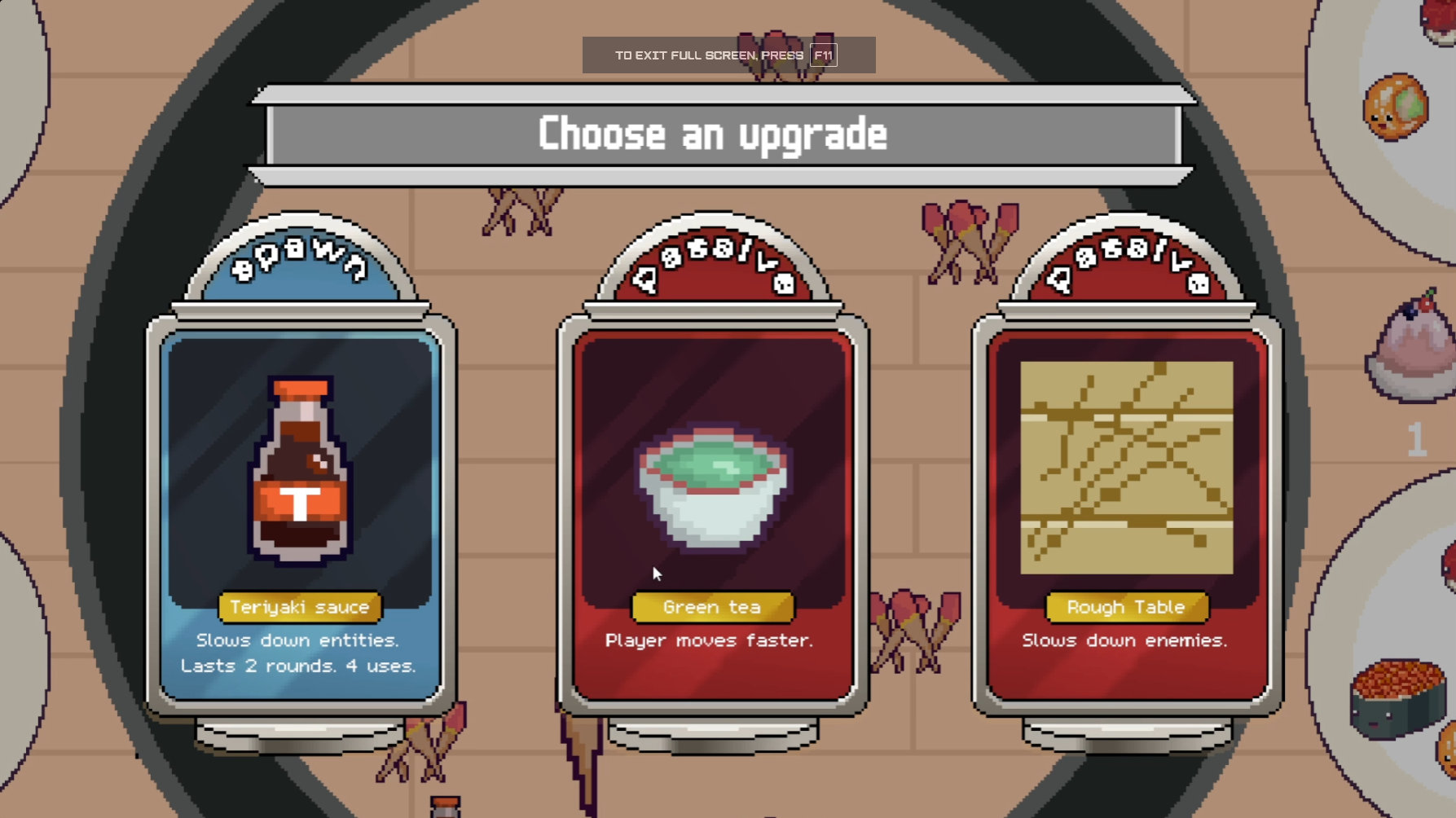 Wow i love the pixel art so much, large scale like the cat hands is always so impressive to me, the game is great too! I wish there was a little more feedback on some of the powerups, like hte soy sauce or chili oil just seemed to spill right under the bottle which was positioned on the right side of the screen and i couldn't figure out how to move it, but that might be a me issue