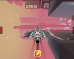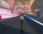 I was able to complete the first two races, but struggled with the third. I kept running out of fuel on the last lap. I was trying my best to avoid fuel pickups on earlier laps to leave them open, but the hitboxes are generous and the track is often thin… so, unfortunately, if there were more races after that one, I didn’t get to see them.
