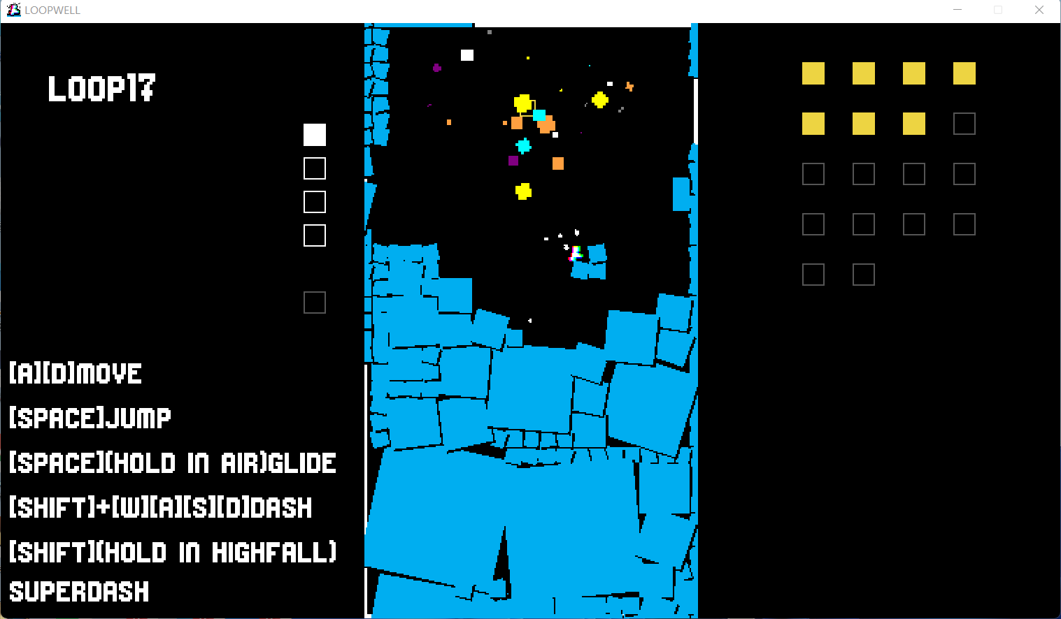 Judging by the name and aspect ratio, this was probably inspired by Downwell? I didn't get a really good hang on the controls, but the visuals were super cool!