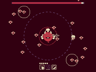 Artstyle is great! For me personally the choice of music was to chill for a boss fight and the fighting pattern didn't had some "ups and down" just constant bullets ... would enjoy it more when there is some "intense action" but also periods of rest - instead of "bubble shield would" prefer a dash... and if there would be some increased difficulty with the boss becoming angry over time and then changing the attack patterns.
