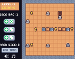 Art style, sound design, and levels were really fun! My only small critiques are that I wish there was a really small dice roll animation and the importance of the dice bag was not inherently obvious to me. With that said, the cute characters, easy to understand concept, and overall fun gameplay made this a great game. It might be fun to add new characters and new die. Would play again!!!