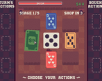 The visuals and sounds are on point, the gameplay is also very creative but not knowing what enemies are going to do makes it so you kind of win on luck. Also it's definetily lacking a cancel button since taking a card just to test the distance of something then being locked on that action is really annoying. But still it's a pretty fun and creative game! The shop was also a great idea giving the player more control of the RNG.