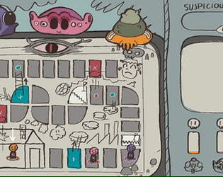 the idea is super sweet and I love how you actually put effort into a small story too! the artstyle is super charming and tbh in this jam i was really refreshed to see a stylized 2D game! The monsters and the general design are super cool and the game is easy to play and understand. I really liked how intuitive it is which actions will piss off the monsters and at times u felt like an evil genuis if you let someone get ahead just to drop them into a trap up ahead. My only wish would have been for the suspicious-meter to go down a bit if i don't do anything over a few turns, so there would have been a reward for not fudging the dice too! Great job, I really liked it!