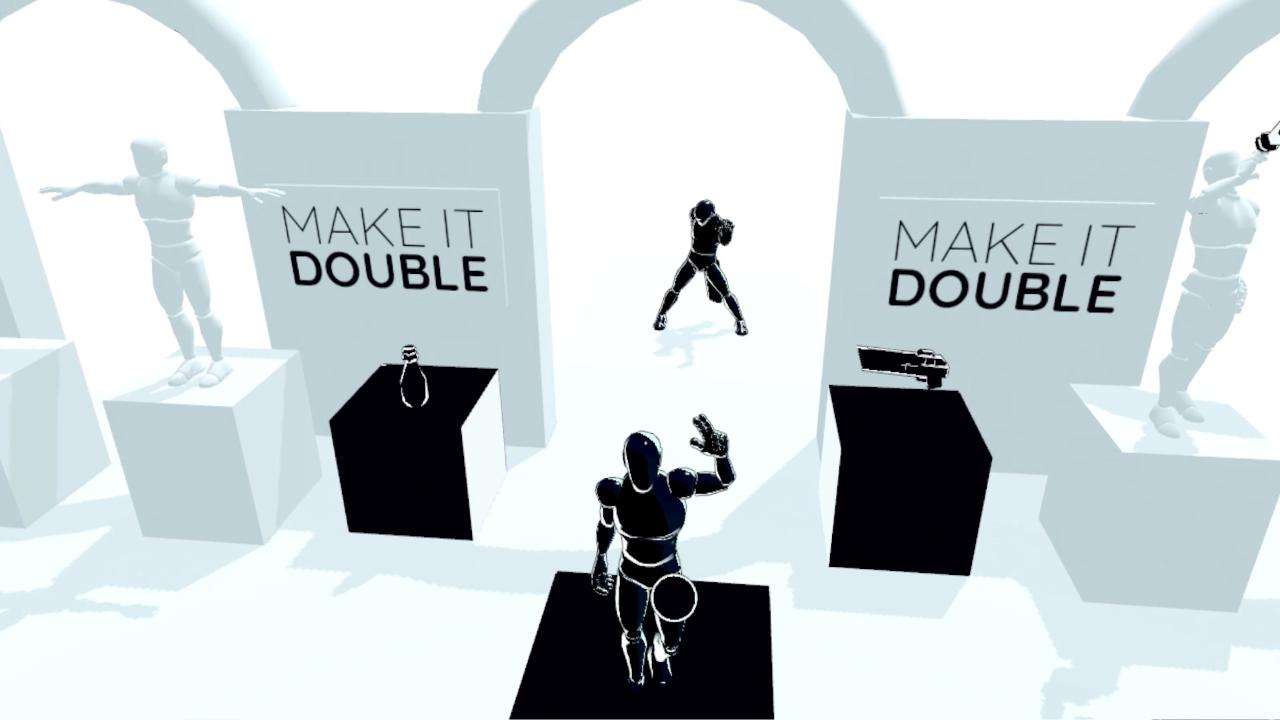 Cool twist on SUPERHOT! You really nailed the aesthetic from the original game as well. It was fun playing as a spectator/god and trying to give your ally the best odds of winning. I am imagining how this could play if your ally was also a real VR player haha.