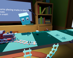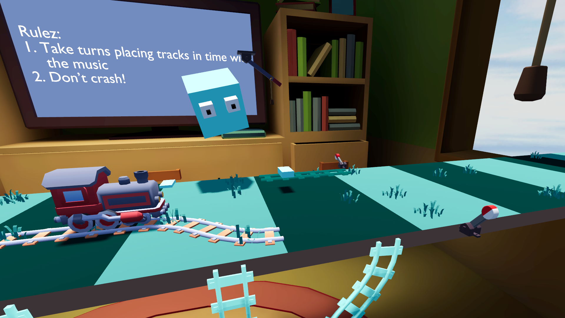 For me the table was a bit too far when I started the game so I had to reorient myself a few times but the game started after a certain amount of time. An easy quality of life fix for this would be that the game starts when you place the first track piece (or maybe when pulling the train whistle.