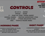- A pretty cool concept and well executed and presented. Some fixable issues design wise (don't find enough items in the day and there's no point playing the night, running backwards while shooting can be frustrating) but it's a good first version that could be iterated on