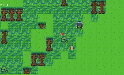 The graphics are generally very nice, especially the little characters! I wandered around for a bit and fought some creatures but wasn't sure what's the goal. My biggest complaint would be the trees - initially I was wandering why does the player get behind the weird green tiles and only later figured out they were part of the trees. Visually it looks a bit weird, and more importantly it makes figuring out to which tiles one can move confusing, besides hiding creatures and items.