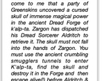 - The set-up and structure of this quest plays out really well - I know the heroes will enjoy exploring the crafted map for this quest, and seeking out that elusive skull... great qork and the best of luck!