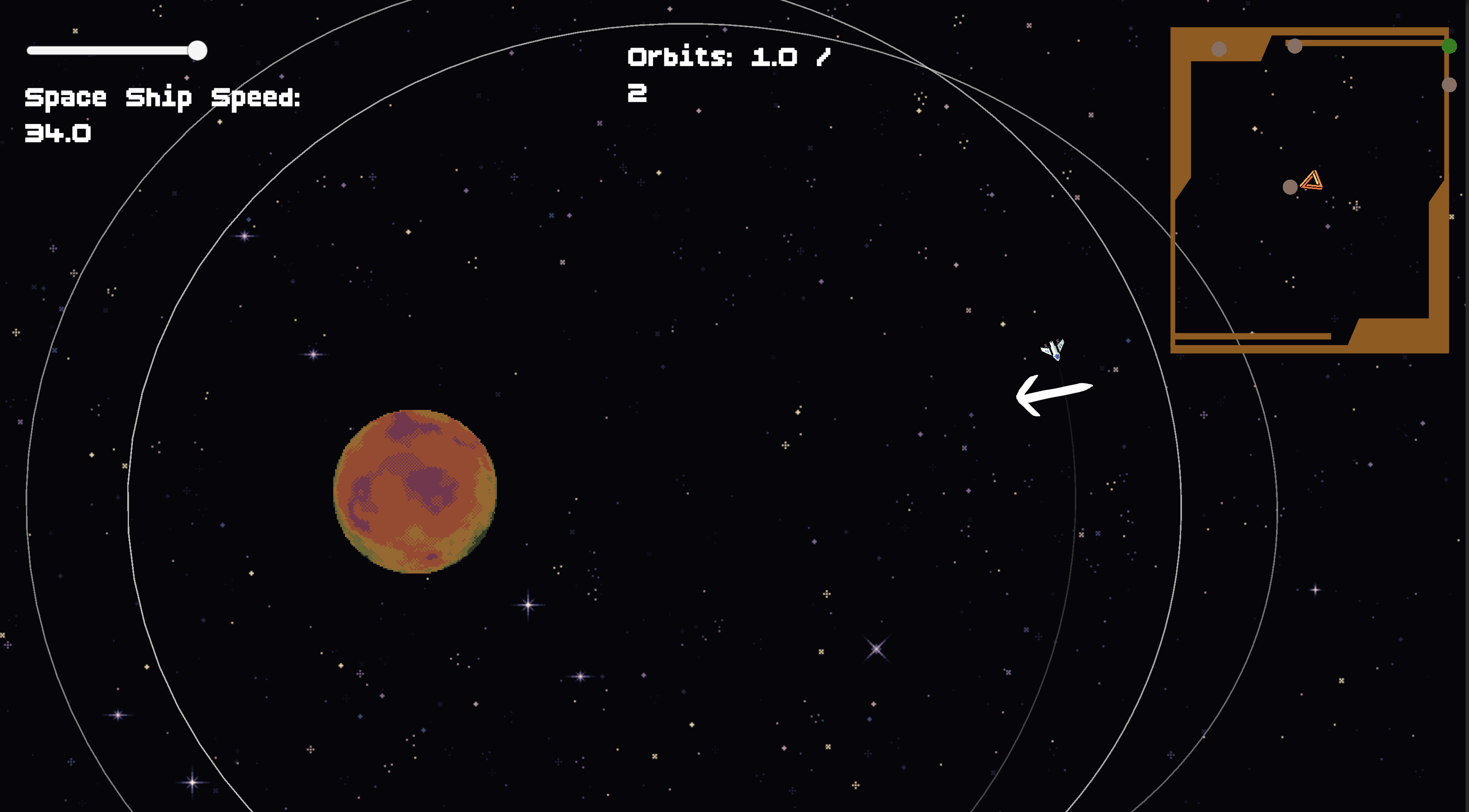 Outsmart the cosmos. A 2D physics puzzler about slingshotting through star systems on a single tank of fuel.
