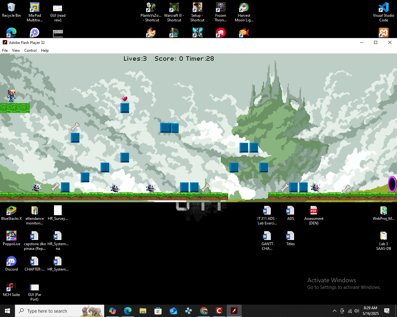 -Losing all lives = Game Over (return to main menu or show Game Over screen).