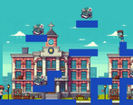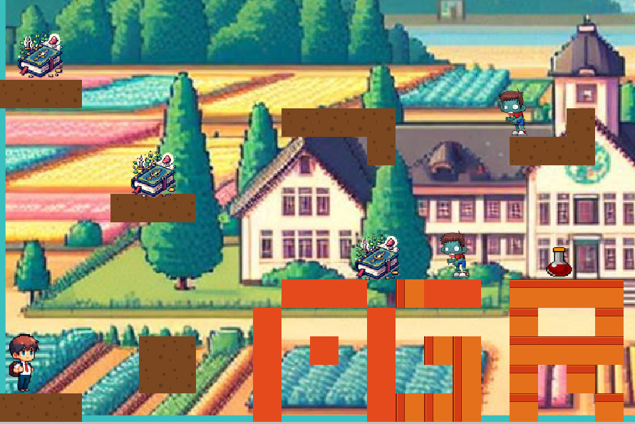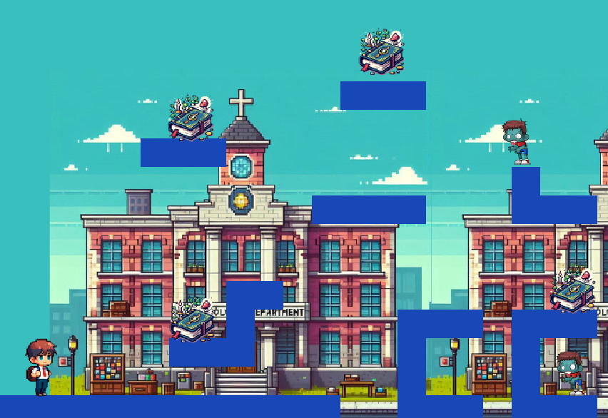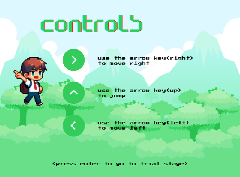The mechanics of this game are for you to survive the game and beat enemies. There are five levels: the first is the easy one, followed by medium, intermediate, hard, and extreme hard. Every level has its own difficulties. The controllers are arrow up to jump up, arrow left to move left, and arrow right to move right. Let's see if you survive long enough on the extreme hard level. Good luck playing our game, and have fun
