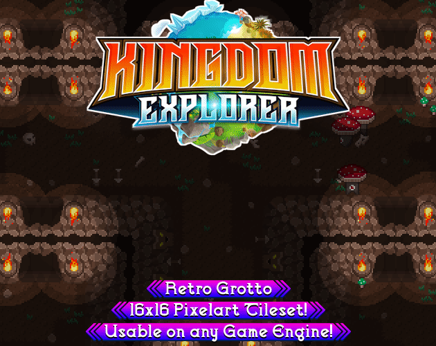 Retro Grotto 16x16 Tileset [Kingdom Explorer]'s itch.io page