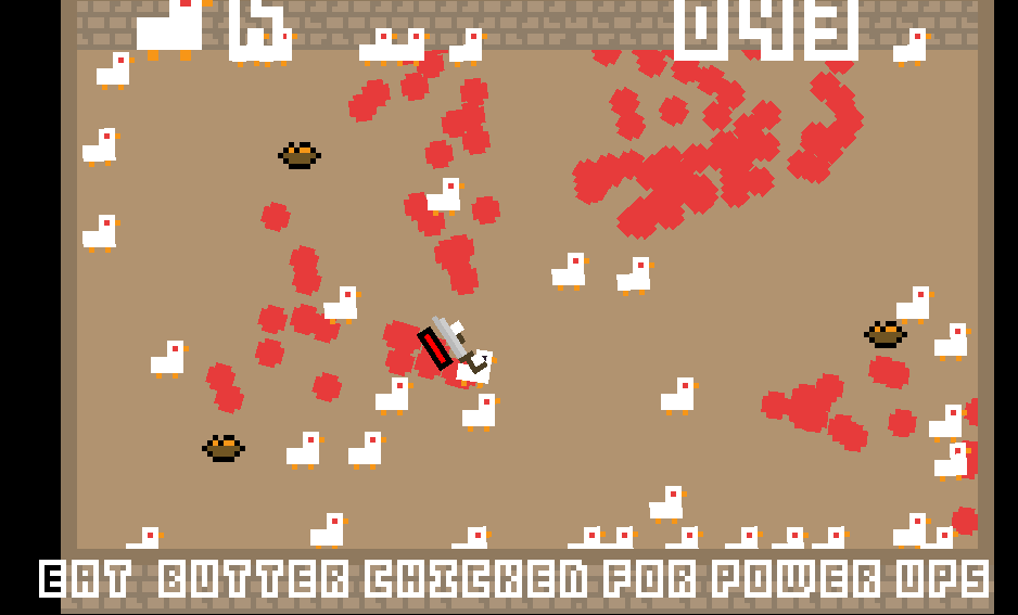 Fun to play! I liked how clearly the gun indicated when I could shoot, and the blood effects were very nice. Maybe add WSAD input though, mouse and arrow keys were a bit uncomfortable.