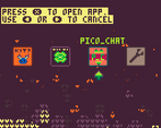 PICO-8 means a lot of graphic limitations (16 colours) but that inspires people to get a bit creative as to how they use them! Changing the colour palette was something that I felt should be possible given that on older consoles they allow users to change the colour of the user interface/UI.