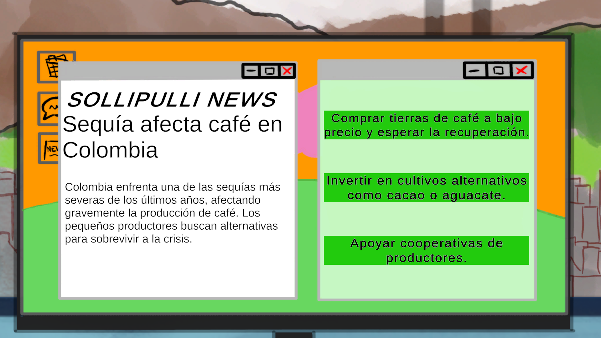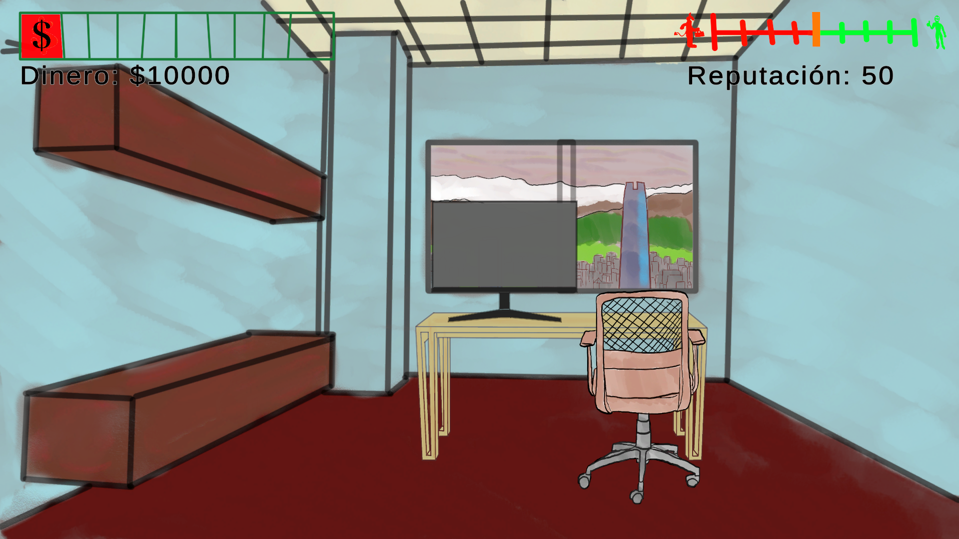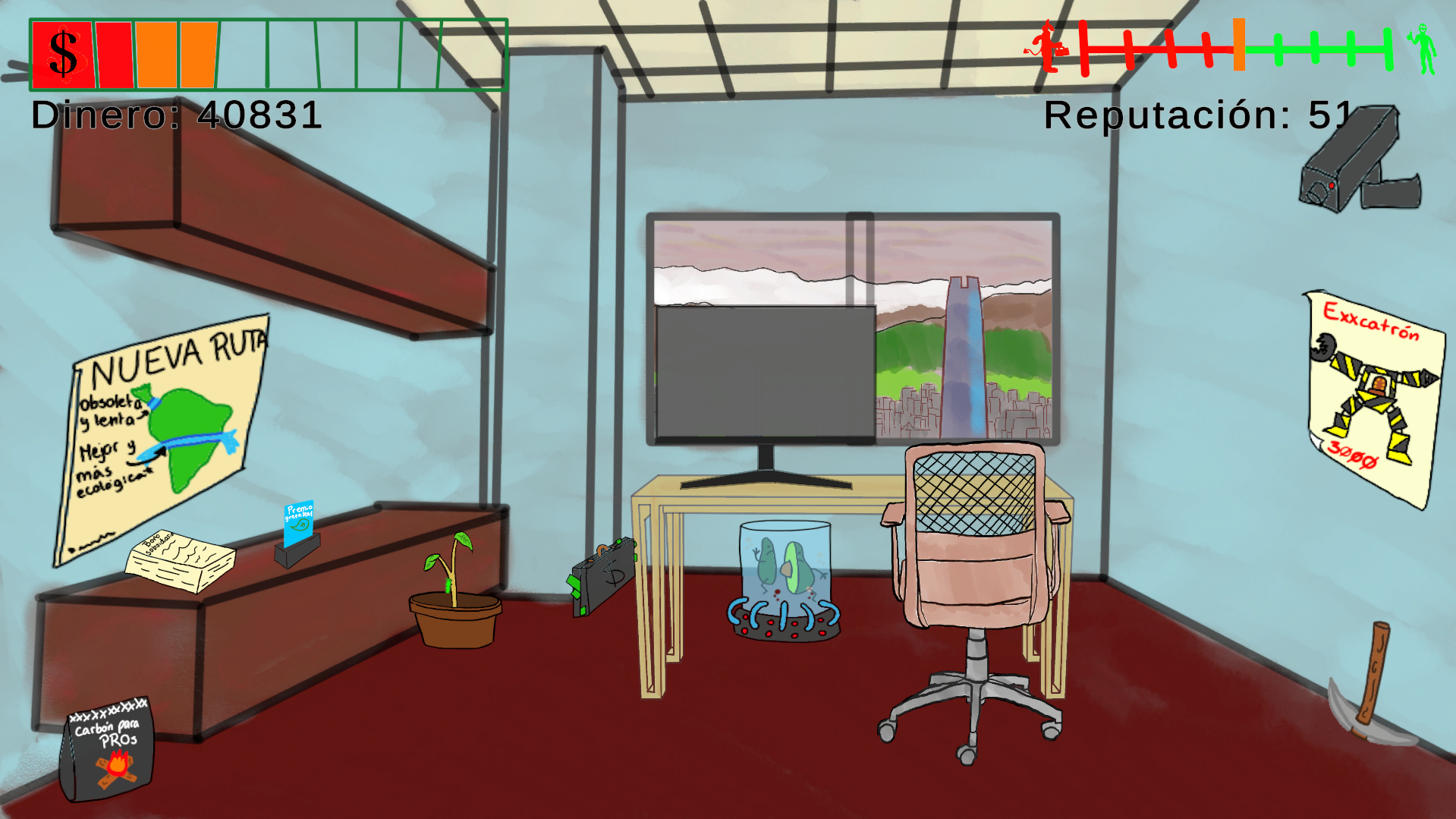El juego está ambientado sobre contingencias que existen (o podrían existir) en América Latina y muchas de las elecciones tienen objetos representativos. Con respecto al tema, lo pensamos en relación a que desde una oficina no ves el impacto que pueden generar tus decisiones (si no ves lo que haces no lo sientes) por lo que puedes hacerte rico fácil a costa de los demás o tomar la ruta difícil, pero honesta.