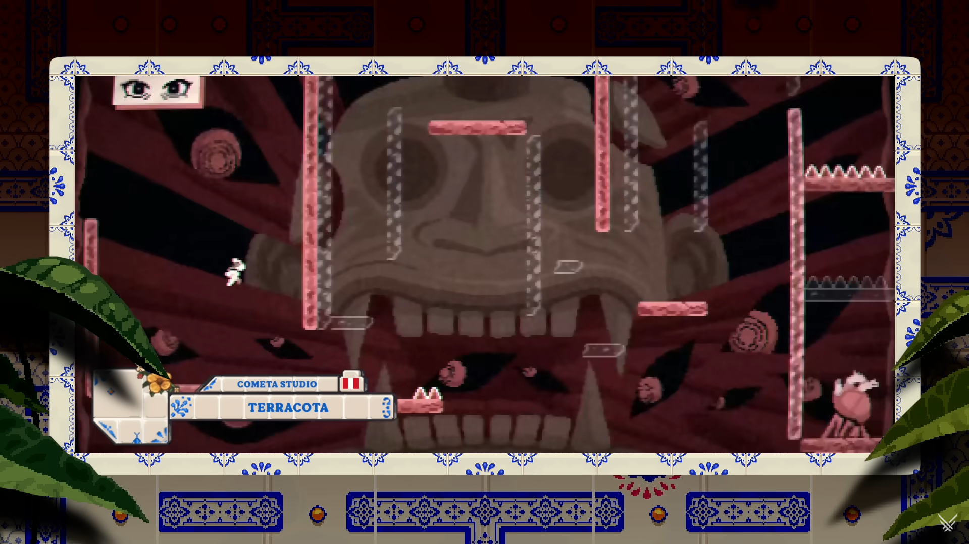 Terracota es un plataformas de precisión en 2D con tintes de horror sobre un personaje de cerámica que debe eliminar una maldición que ataca las cerámicas moche, el juego integra el tema en la mecánica de cambiar a un entorno paralelo al cerrar los ojos de la protagonista, lo que le permite alcanzar nuevas plataformas para llegar a su objetivo final y evitar el miedo que causa el ambiente hostil de la maldición, la identidad latina se encuentra en la inspiración artística y narrativa, ya que se incluyen elementos de la cerámica moche, una cultura preincaica del Perú.