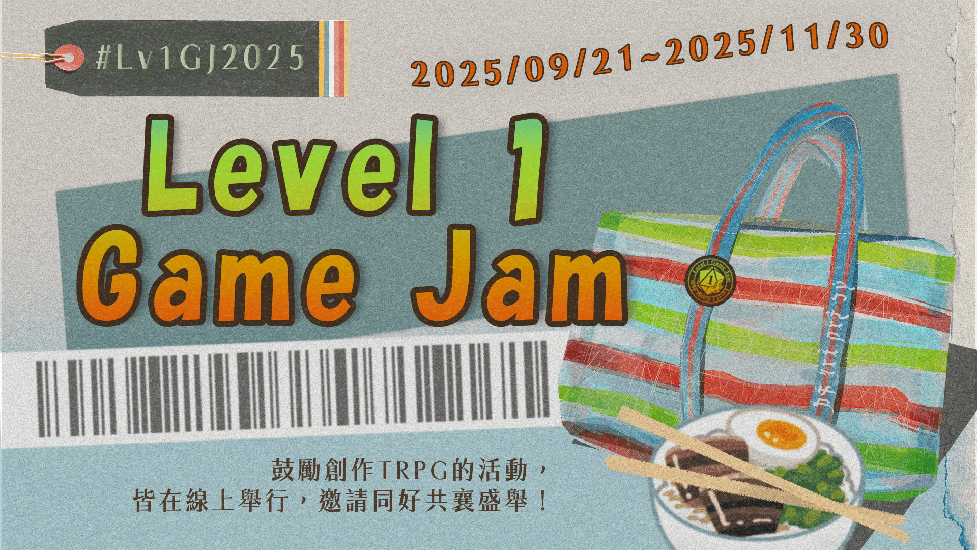 Level 1 Game Jam(Lv1GJ)是鼓勵創作 TRPG 中文內容的 Game Jam,所有活動皆在線上舉行。Game Jam 是一種遊戲創作活動,通常是在一段固定時間內,請參與者依照主辦單位提供的主題,在限定時間內創造可遊玩的遊戲原型。