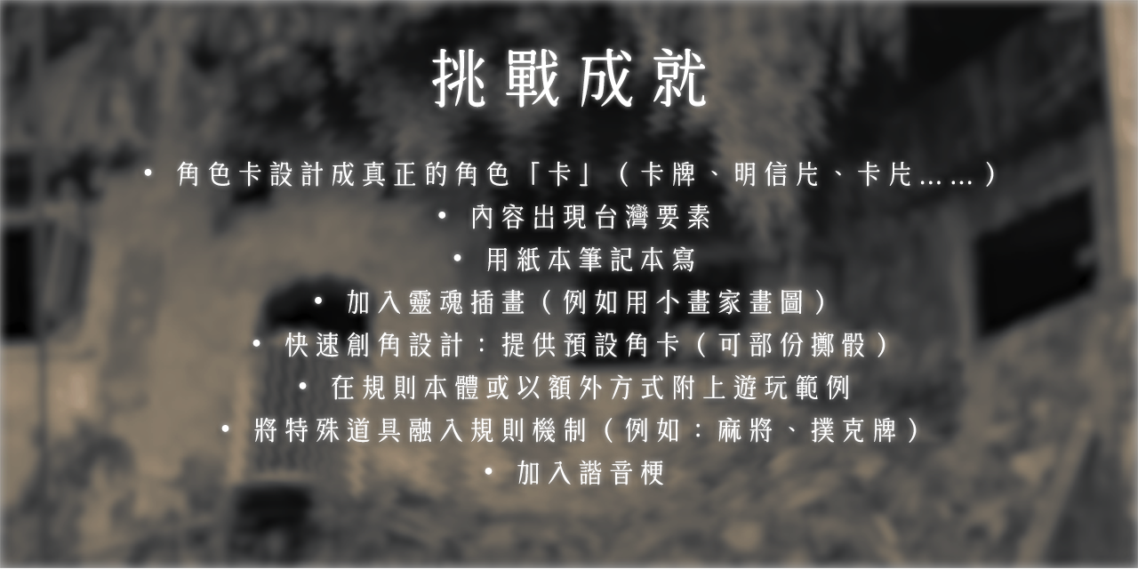 本次活動預計從撰寫可玩「系統/規則」、「模組/劇本」及「擴充資料」出發,讓大家針對題目自由發想,進行 TRPG 主題創作。活動期間,設有 Discord 伺服器,讓參與者互相分享、討論。預計於 2025/10/04 晚間舉辦初步概念分享、2025/11/30 晚間舉辦成果分享,歡迎大家來交流。