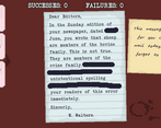 A mail censorship game. The authorities above you don't like what civilians are mailing.