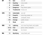Handy stat reference for creature design